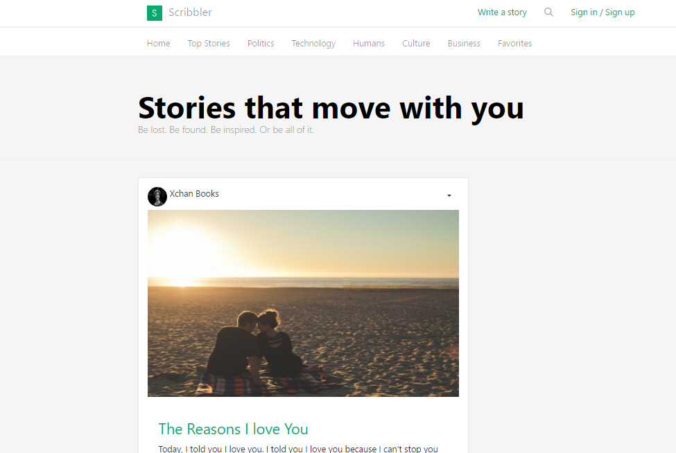 - My site is called “Scribbler”. It’s a blog site inspired by Medium.com. It’s essentially the same as WordPress but without limit to the things I can do. With Scribbler, I can be fully flexible in implementing features that I want.
