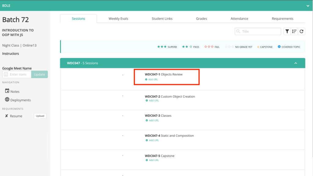 Step 10: Look for the Add URL button under Session 1- Objects Review and click on the button.