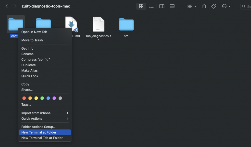 Option A: Inside the zuitt-diagnostic-tools-mac folder, right-click on any folder, then select “New Terminal at Folder.”