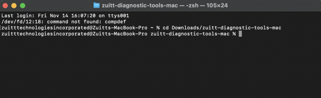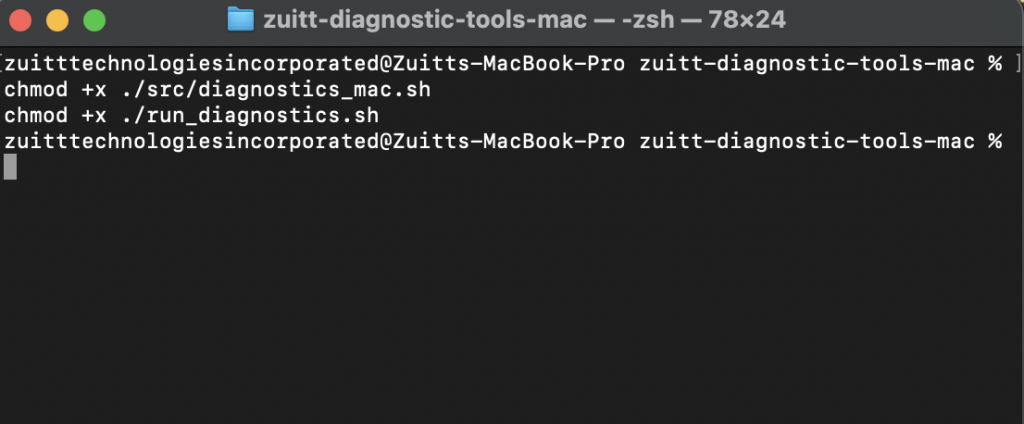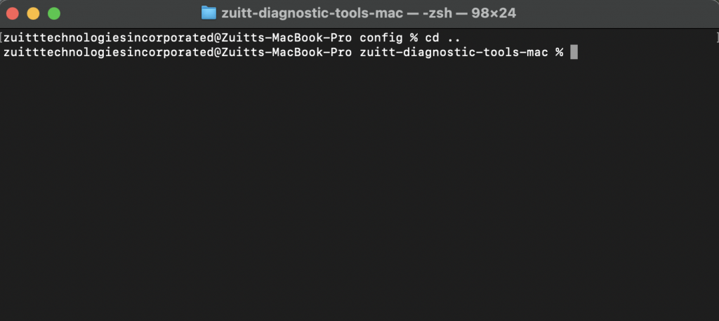 Navigate to the zuitt-diagnostic-tools-mac folder by adding this command: