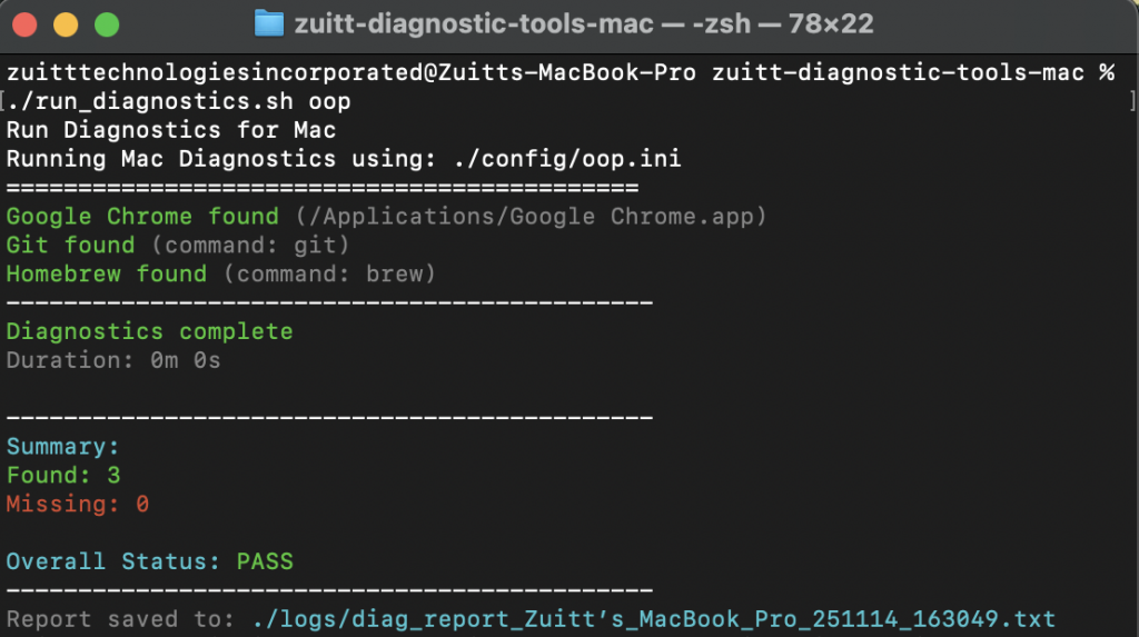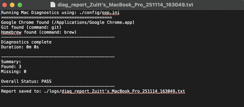 Diagnostic Script Tool for JS OOP Mac