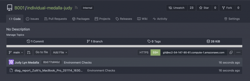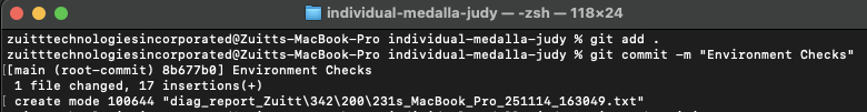 Step 8: Save the .txt file to the Zuitt Git repository. Then, update your local individual Git repository by adding the s01 folder and pushing it with the commit message “Environment Checks.”