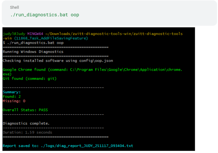 Step 5: You can run diagnostics for JS OOP by passing it as an argument to the script: