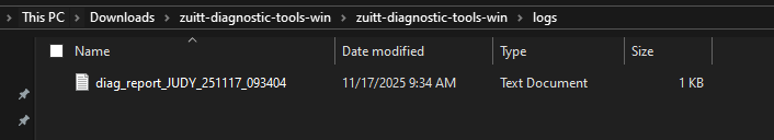 Step 6: After running the diagnostic tool, a text file will be generated inside the logs folder.