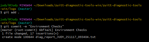 Step 7: Save the .txt file to the Zuitt Git repository. Then, update your local individual Git repository by adding the s01 folder and pushing it with the commit message “Environment Checks.”