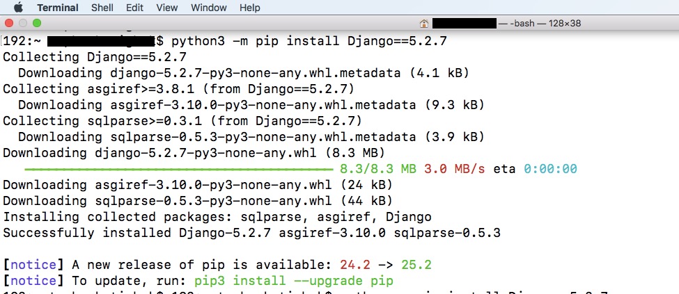 python3 -m pip install Django==5.2.7