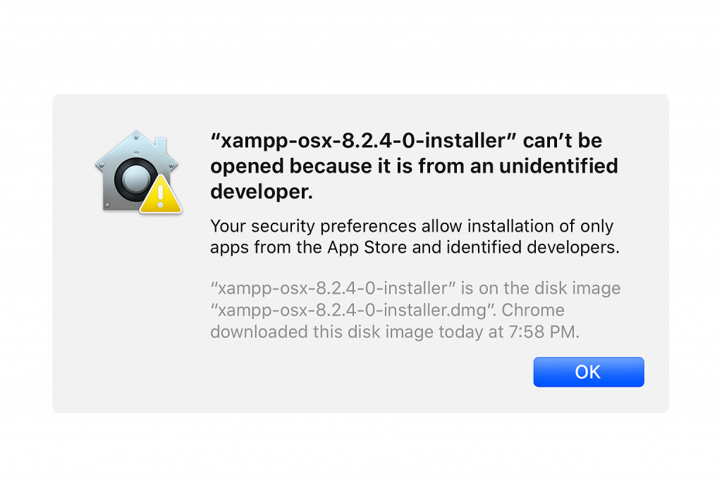 Warning: Can’t be opened because it is from an unidentified developer.