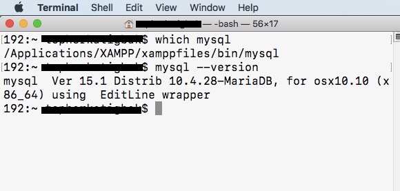 Step 15: Execute the following commands in the Terminal to determine that XAMPP has been configured properly for Terminal use:
