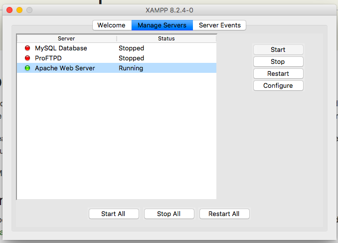 Note: If Apache is not running, select Apache and click the Start button.Open Google Chrome and go to localhost/phpmyadmin to confirm that the phpMyAdmin web program works properly.